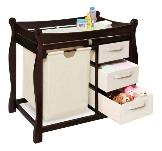 Sleigh Style Baby Changing Table with Hamper and 3 Baskets