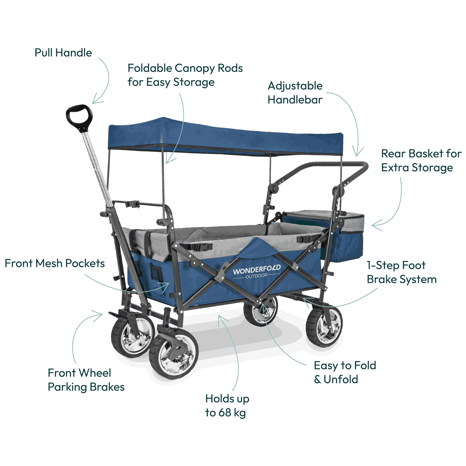 S4 Push and Pull Folding Wagon with Canopy & Brakes